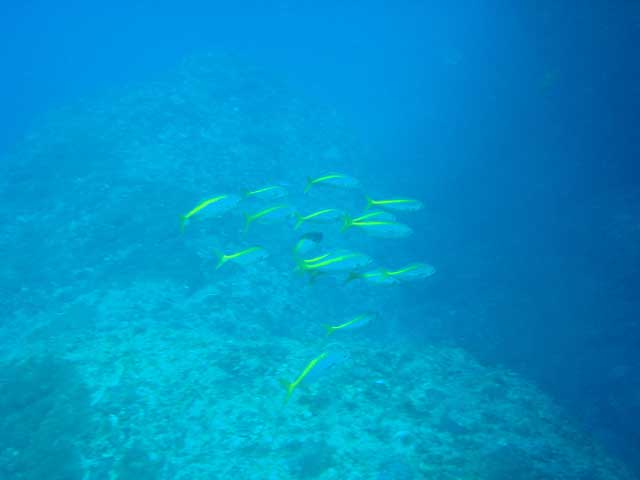 海もじゃっかんのうねりがあるものの落ち着いており、陸も海も暑いです。ただ気持ち透明度がよくない感じで、白濁りしてました。