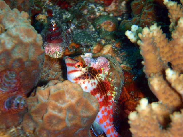 チョウチョウウオの仲間の子ども達もあちらこちらで見られますし、イロブダイの幼魚やミナミハコフグの幼魚も元気いっぱい。