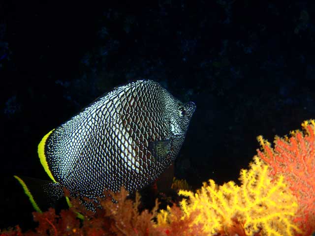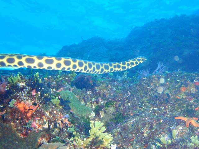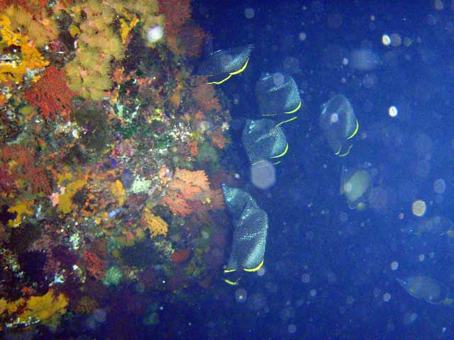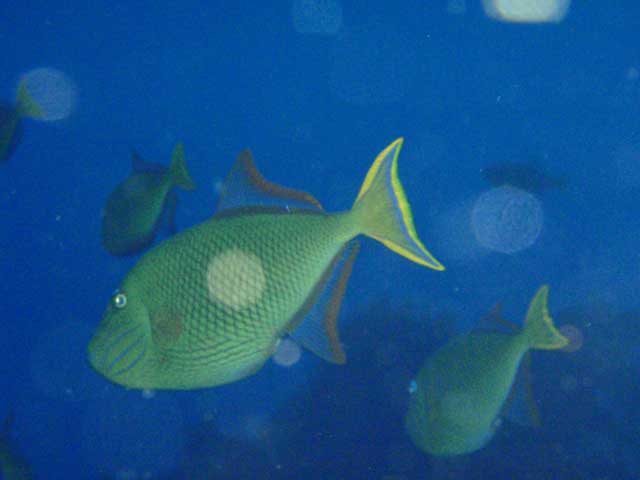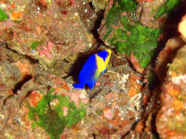 食事の時間なのかモヨウモンガラドオシが数匹にょろんにょろんと泳ぎまくっていたり、スミレヤッコのちっちゃな可愛いのがいたので、覗いてみていたら、いつの間にかナメモンガラに囲まれたり、