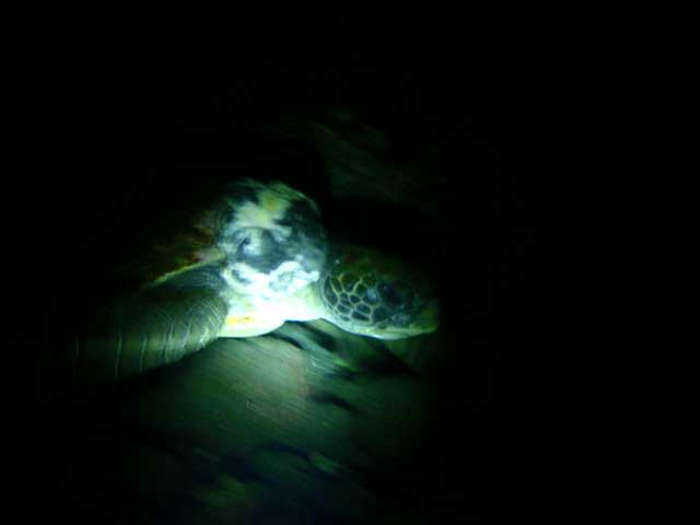 穴の奥でもぞもぞしてたアオウミガメにライトあててみてみたら、大きな腫瘍ができていて、なんだかちょっと残念な気分になったり、