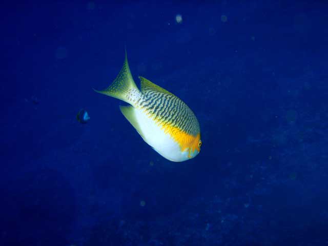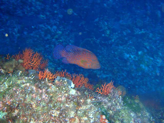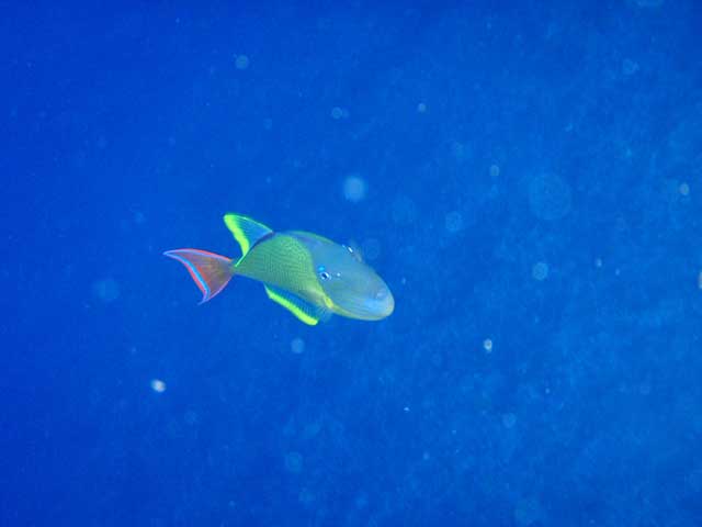 キンギョハナダイやキホシスズメダイの群れはあまり大きくなかったので、徐々に強まる北潮に乗りながら、トサヤッコやナメモンガラを撮りつつも、根を周るとユカタハタが来たりして。