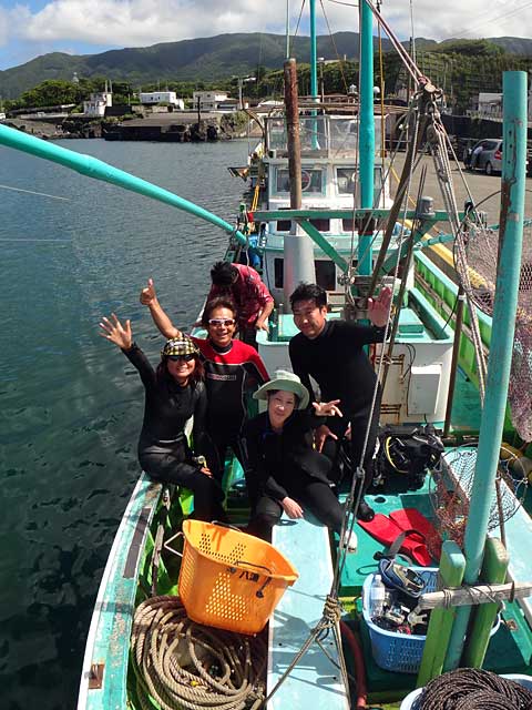 午後からはボートで蒼い海へ。風もでてきて水面はちょっとパシャついてはおりますが、水は綺麗で八丈ブルーを感じられます。