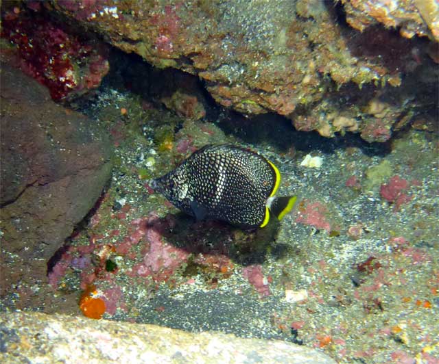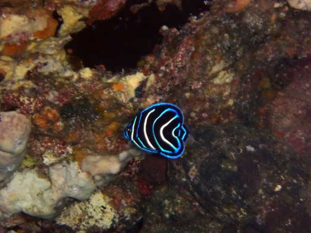 入ってすぐの浅場にはユウゼンの子どもやサザナミヤッコの子ども、教えて貰ったカミソリウオなんかもおりまして、