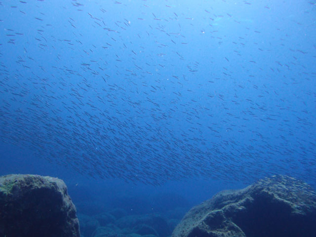 はじめての方にもおすすめの八丈島での体験ダイビング、初心者やブランクでも安心のガイドダイブ、丁寧でしっかりとしたPADI Cカード取得講習など、なによりもお越し下さるみなさまとの出会いを大切している東京から飛行機ですぐの八丈島のダイビングショップです!! [キビナゴいっぱい夏の海]