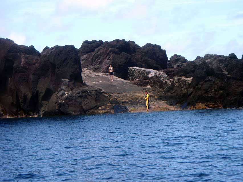 夏の気持ちの良い青空と蒼い海の中、八丈小島へ行ってきました。八丈島の周りはちょっと白濁りしている感じですが、小島は水が抜けてて海がとっても深い蒼。