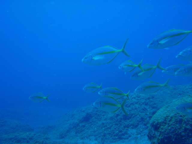 そんな中、ツムブリやシマアジ、ヒレナガカンパチなどが周ってきていて、ちっちゃなハタタテハゼの子どもや、ツユベラの子ども、アジアコショウダイのこどもなども見られました。