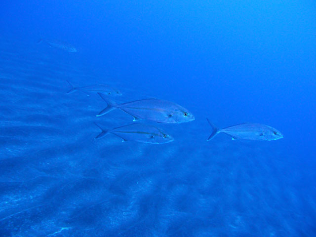 キビナゴも入ってきていて、カンパチやらヒレナガカンパチやらが周ってきてたり、アオヤガラやマダイも混じってキビナゴ襲っておりました。沖の方では大きなヒラマサも一匹だけ、沖の方を泳ぎ去っていったりもして、