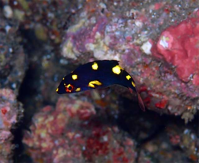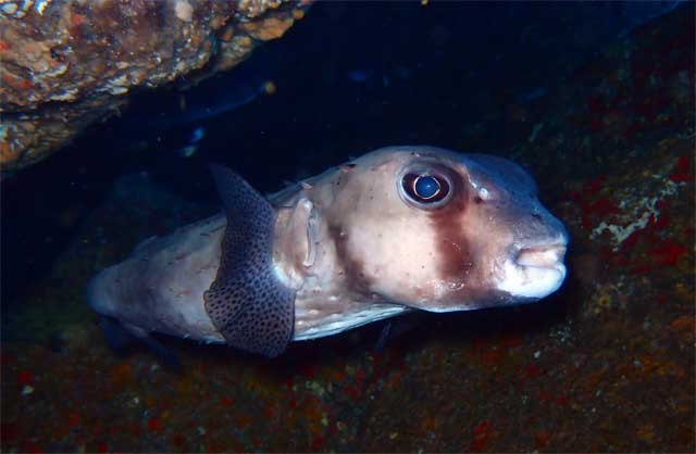 岩の陰にケサガケベラの子どもや、浅いところでは体がまだスケてるアジアコショウダイの子ども、ヌボーっとしているイシガキフグのでっかいやつや、テングダイ、アオウミガメもパラパラで、メジナもたくさんいたりして、アーチのとっても沖の方にはアオリイカも2匹だけいたりもしてました。