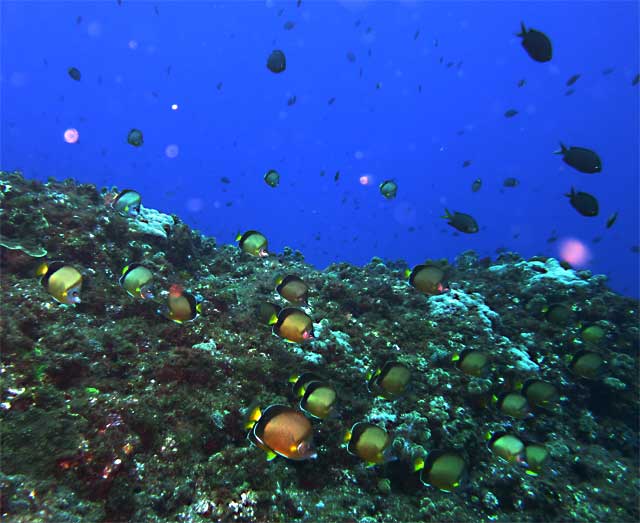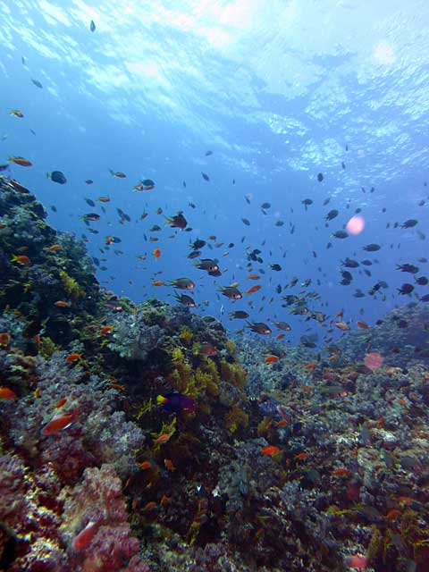 とりあえず、西側ボートダイビングの魚影の濃さは相変わらずすごいもんで、今の時期、海もとっても蒼くなっていて、初八丈で全ボートというなかなか贅沢なダイビングでした。まぁ、魚影が濃いところは流れたりもするんですけどね・・・・・