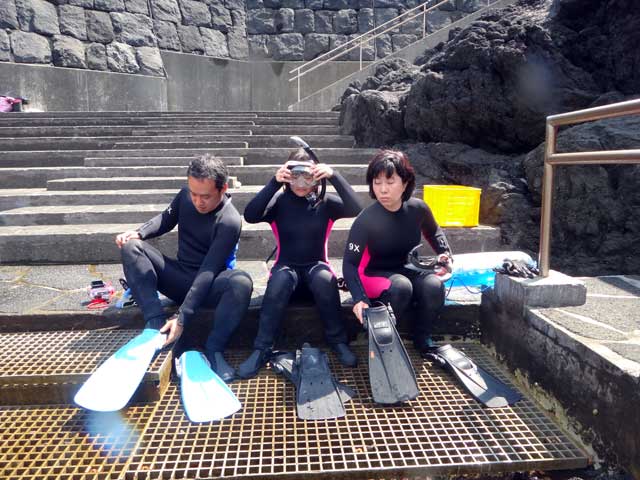 天気が良いのがせめてもの救いという感じで、相変わらず海はどこもうねりが抜けきれずでしたが、本日は八重根のタイドプールでスノーケリングと八重根でダイビングです。