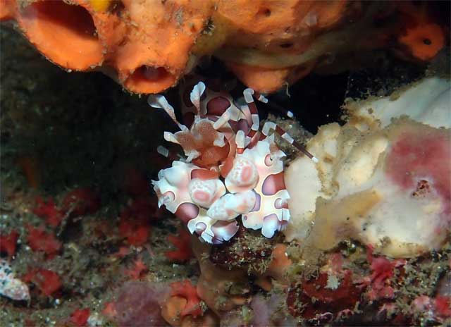 ほかにも、コガネスズメダイやナガサキスズメダイ、ツユベラにカンムリベラ、ムナテンベラなんかの子ども達と、ちっちゃいやつらもたくさんです。あとはすっかり全身でてきていたサビウツボや、キンチャクガニにフリソデエビなんかもいたりもして。