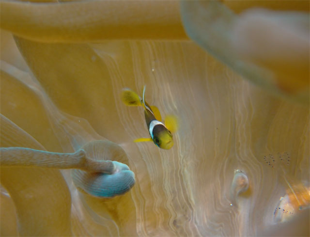 うねりは多少ありますが、水温も暖かでちょっと水も綺麗になったような感じもあって、ミナミゴンベの子どもにシマウミスズメの子どもなんかがおりまして、