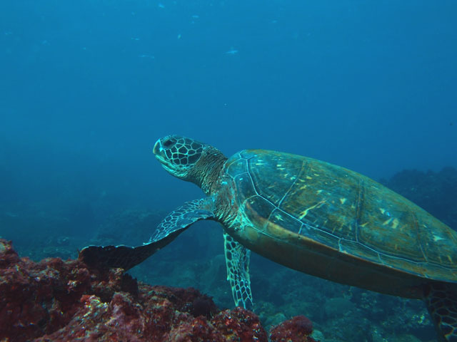 クマノミの子どもにミツボシクロスズメダイの子どももたくさんで、マツカサウオの子どもは相変わらず奥の方に入っていたり、湾内にはアオウミガメもきていたりもして、