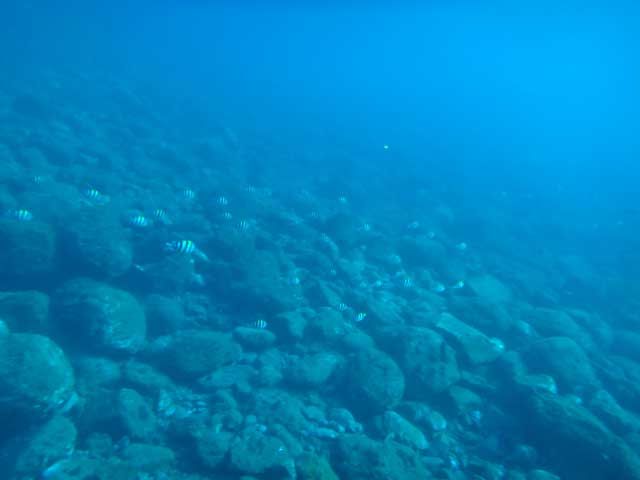 流れに負けずちょっと沖まで出てみてお腹大きなピグミーを見て、上がる前に、ウバウオがフラフラ泳いでたんでとりあえず撮ってみたり、ガレ場の砂溜まりのところにはツユベラの子ども達もいたりして、