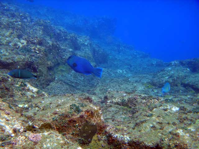 大きなアオブダイの頭のコブも流れのせいでへっこみ気味になってたり、先日までの台風のうねりのせいか、ちょっと怪我してる魚達も目についたりもしながら、