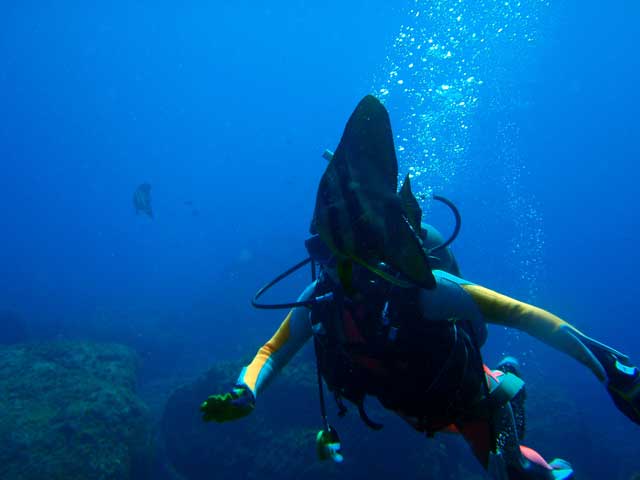 夏の陽気が続くがまだまだ暑さが気持ちのよかった今日の八丈島。海の方は、どこも凪いでいましたので本日は八重根とナズマドでダイビング。