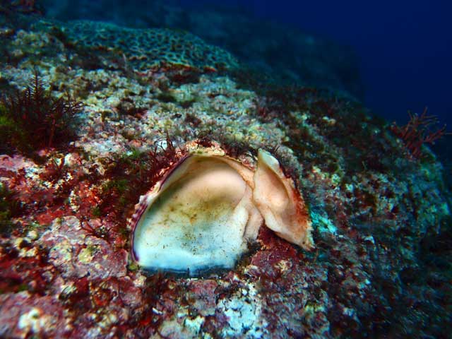 なんとなく濁りがあって、南潮がかかり気味で冷たい水も入ってきておりましたが、浅場にはタカベがたくさんいたりして、先週の台風のうねりの影響で水底の岩がひっくり返されて、海藻なんかもすっかり剥がされ、岩にへばりついてた貝もパカッと開かれたりしておりました。