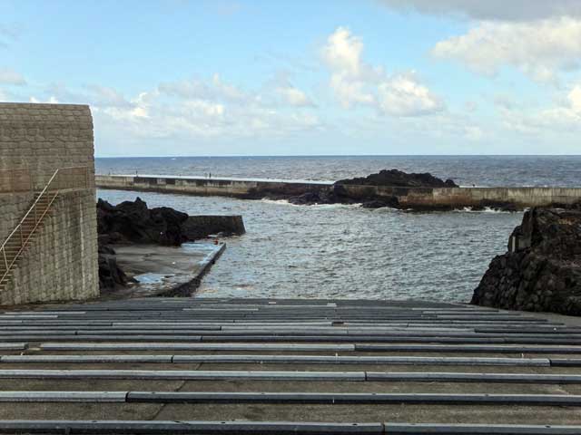 時間とともに晴れ間がなくなりどんよりと不安定な一日となっていた今日の八丈島。海の方は、南西側は風の影響でパシャついていましたが、北東側は凪いでいました。