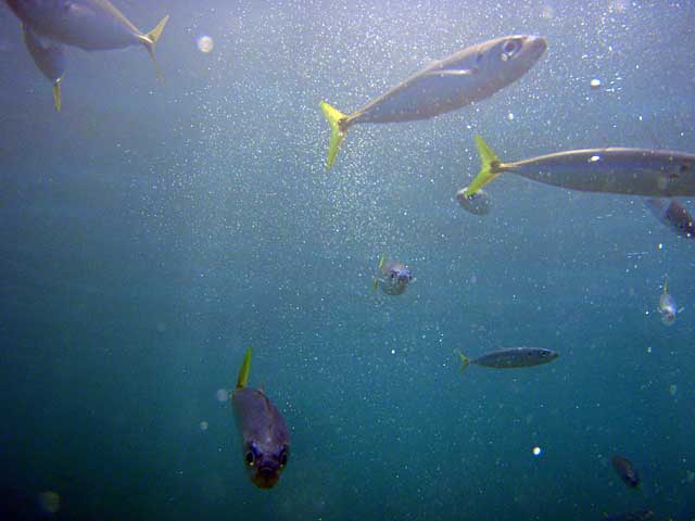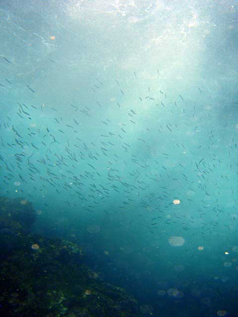 ただ、ムロアジとキビナゴが比較的暖かな中~上層を流れるように周ってきています。この急激な水温低下、また魚がガラッと変わってしまいそう。やっと、色とりどりの魚や、幼魚たちがでてきていたのに・・・