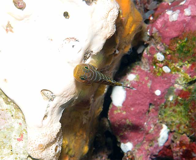 穴を覗けばベンケイハゼにサザナミヤッコの小さいの、コクテンベンケイハゼにニラミギンポなんかもおりまして、