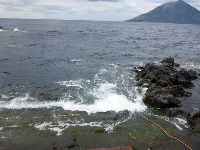 次第に強まる南風で空も段々と暗くなってきていた今日の八丈島。海の方は、南西側は風の影響で時間とともに荒れてきておりました。