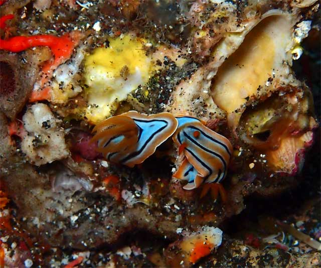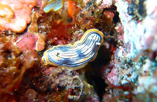 水温低いせいかウミウシもいろいろで、クロスジウミウシやらコールマンウミウシやらムカデミノウミウシやら、