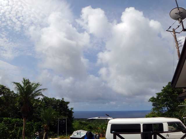 若干雲は多めだが暑い夏の日は変わらない感じだった今日の八丈島。海の方は、南西側は風波で少しパシャついておりました。