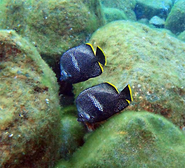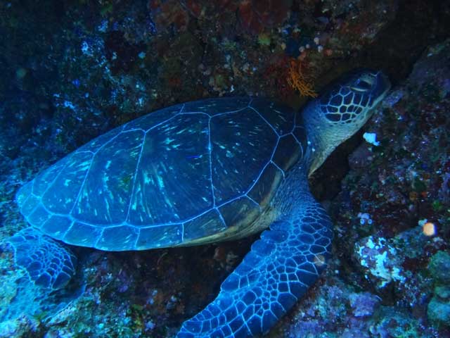 アオウミガメもしっかりハマって寝ていたりしてかなり近くで見られたり、ニザダイやメジナの群れ、キホシスズメダイやキンギョハナダイの群れ、とってもちいさなムスジコショウダイの子どもに、これまた極小サイズのイロブダイの子ども、やや成長してきたアジアコショウダイの子どもなんかもおりまして、