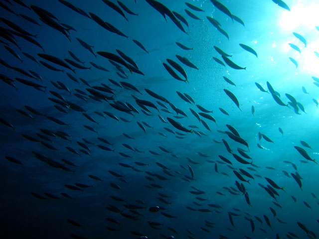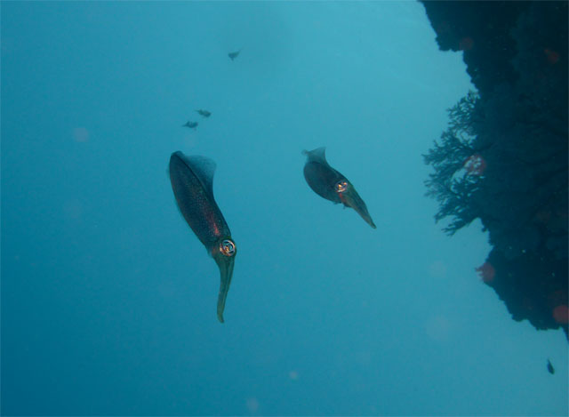 ムロアジの群れに、ヒラマサが周ってきていたり、アオウミガメもたくさん見られ、アーチの下には、アオリイカの子どもなんかもおりました。