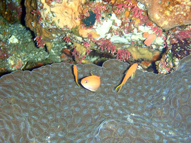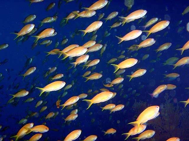 そして、キホシスズメダイがうじゃうじゃと団子のようになっており、何を勘違いしたのかユウゼンも一匹混じっていたり、シラコダイは完全に群の一部とかし、ものすごい大群。ゆっくりと形を変える群の動きに目を奪われたりしちゃいます。