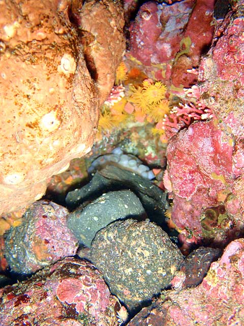 不自然に石が集められてるな~と思って穴の奥を覗いてみると・・・ タコの吸盤が・・・ 卵でも持ってるんですかね~。