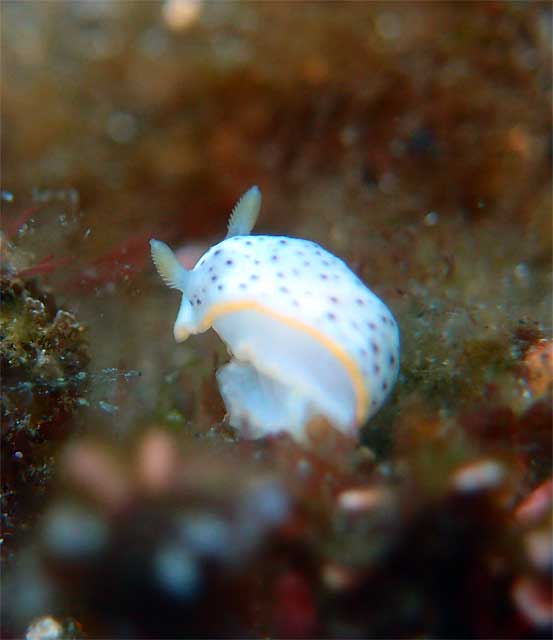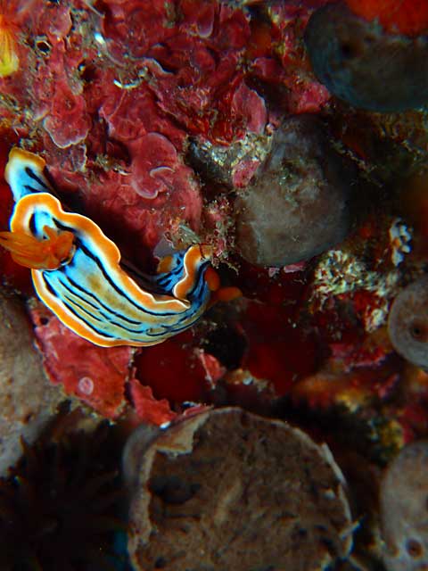 ほかには、そこいら中にたくさんいるモンコウミウシに、頭を穴につっこんでるコールマンウミウシなんかもおりました。