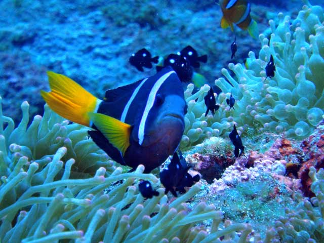 クマノミやイシガキフグやコガネスズメダイをアップで撮ってみたりもして、カンムリベラの子どもや、コガネキュウセンの子ども、タテジマキンチャクダイの子どもに、ウメイロの子ども、ヒレグロコショウダイの子どもなんかもご紹介したりして、