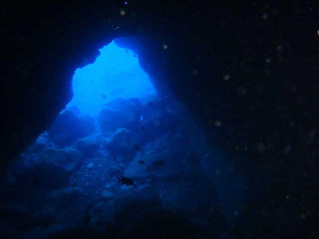 もちろんユウゼンも見て、トサヤッコやナメモンガラも見て、キビナゴも少し少なくはなってますが、まだまだキラキラ群れていて、ヒレナガカンパチなんかも周ってきいて、蒼いトンネル入ってみたり、サンゴの間の小さなカニも見てみたりで、穏やかな蒼い海をのんびり周って楽しんだりして、