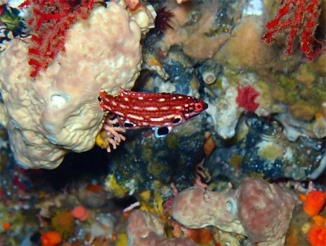 最近よく見かけるスミツキベラの子どもにモンツキベラの子どもなんかも岩陰覗くともれなくいたりもしてまして、梅雨空広がるこの頃ですが、海の中は水もキレイで明るい感じになってます。