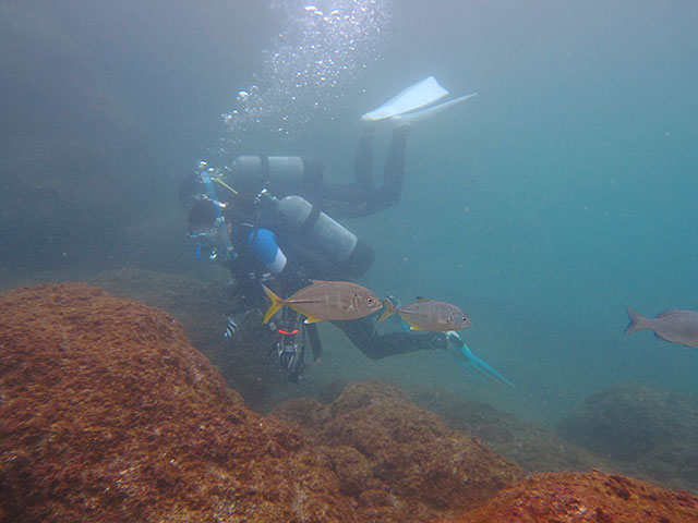 [八丈びより・ダイビングログ] ファン・調査ダイブ-はじめての方にもおすすめの八丈島での体験ダイビング、初心者やブランクでも安心のガイドダイブ、丁寧でしっかりとしたPADI Cカード取得講習など、なによりもお越し下さるみなさまとの出会いを大切している東京から飛行機ですぐの八丈島のダイビングショップです!!