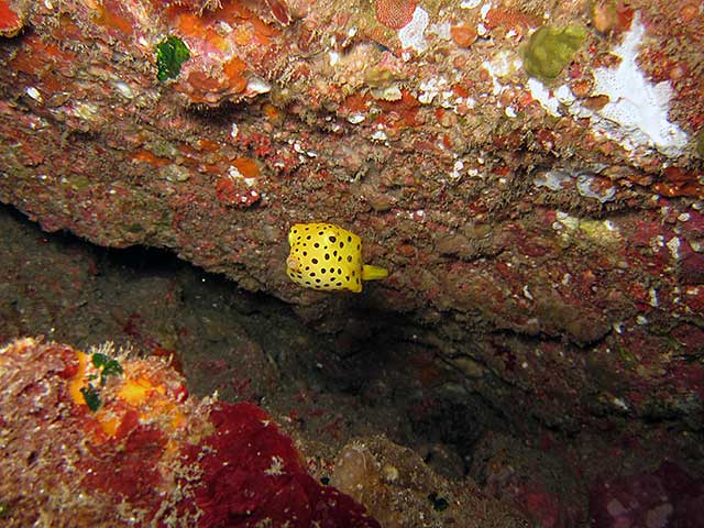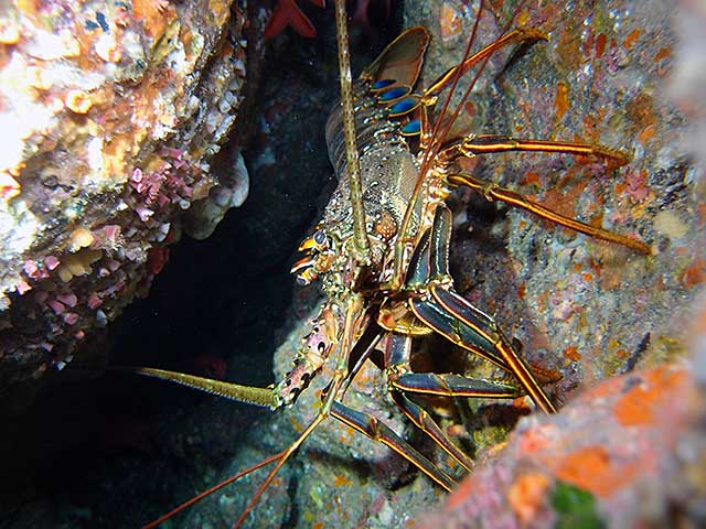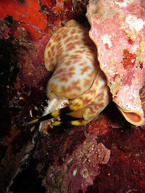 穴の中にはイセエビにナミマツカサもたくさんで、ホラ貝がヒトデをもしゃもしゃ食べてたり、ミナミハコフグの子どもなんかもいたりして、