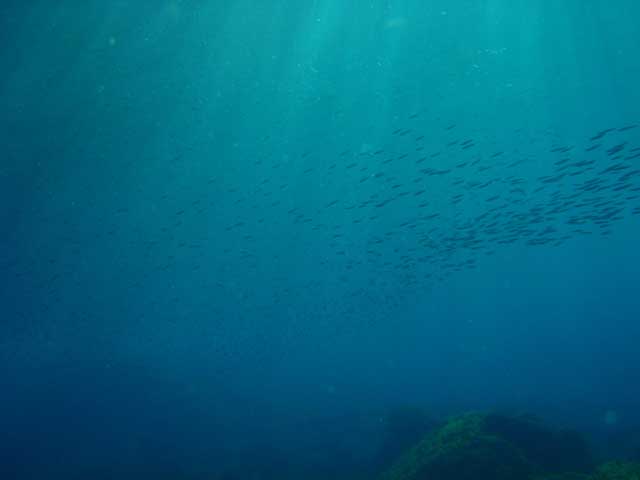 でも、海は貸切。真水が沸いて少し冷たい湾の中にもシマアジが入っていたり、外海にはキビナゴたくさん、ムロアジも周ってきていました。