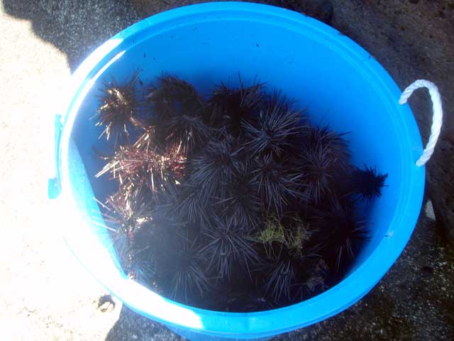 神湊ではなぜだが青い樽が置いてありまして、獲れたてのウニがたくさん入っておりまして、駆除ですか?それとも食っちゃうんですかね? いや、食うにしては量が多すぎ・・・・・ って、もしや、売る気か!?