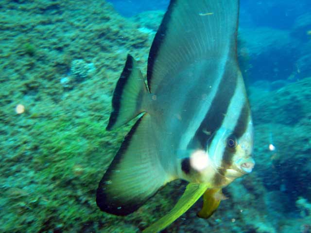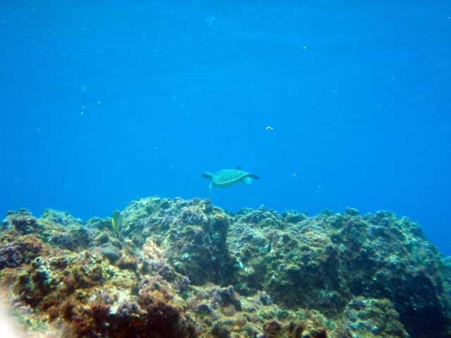 若干うねりが入っておりましたが、なんだかんだで水はキレイ。ユウゼンも見られ、ツバメウオにも付きまとわれ、狙いのアオウミガメもたくさん泳いでおりました。