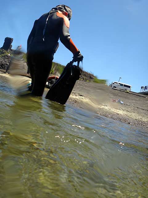 はじめての方にもおすすめの八丈島での体験ダイビング、初心者やブランクでも安心のガイドダイブ、丁寧でしっかりとしたPADI Cカード取得講習など、なによりもお越し下さるみなさまとの出会いを大切している東京から飛行機ですぐの八丈島のダイビングショップです!! [うねりを気にして体験ダイビング]