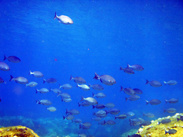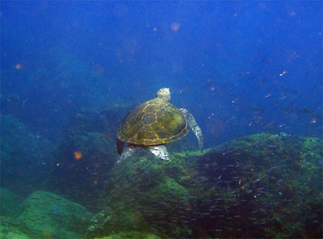 メジナの群れもいたりして、アオウミガメも正面からはみられませんでしたが、小さいやつと大きいやつを2匹も見られ、少し並走して泳げたりもして、