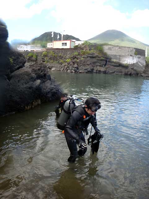 天気はよかったりもするものの、なんだかんだでどこもうねりの入る八丈島でしたので本日はうねりを避けて神湊で体験ダイビングです。
