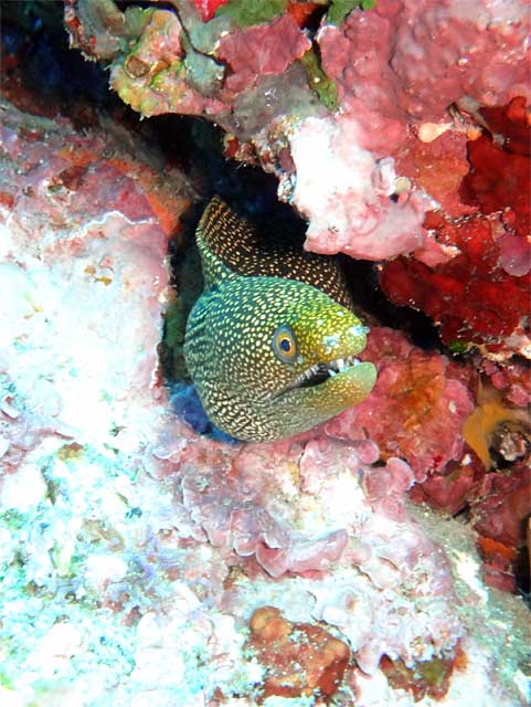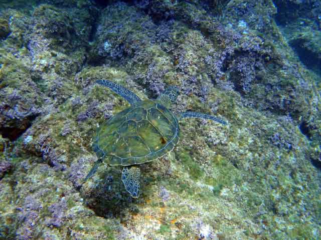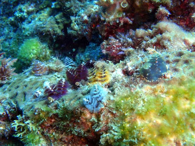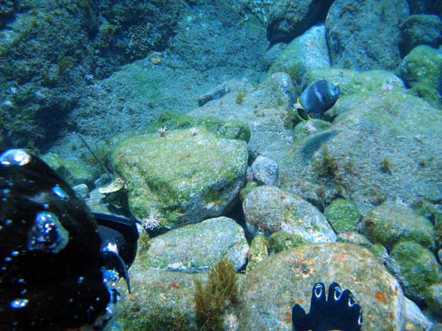 小さいですがアオウミガメとも一緒に泳いで、触ろうとするとすぐにひっこむイバラカンザシも見て、岩のすき間にはウツボもいたりしておりました。