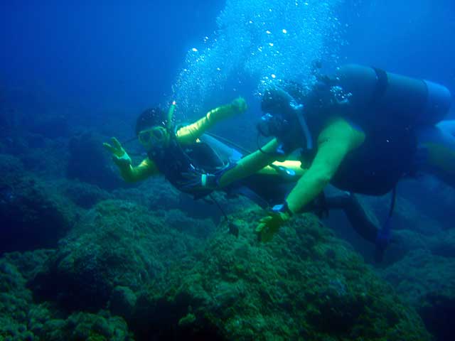 ちょっと体力使う1日体験ダイビングですが、やっぱり数を潜ると上達できます。習うより慣れろとはよく言ったもんですな。お二人とも午後には余裕のダイビングでした。