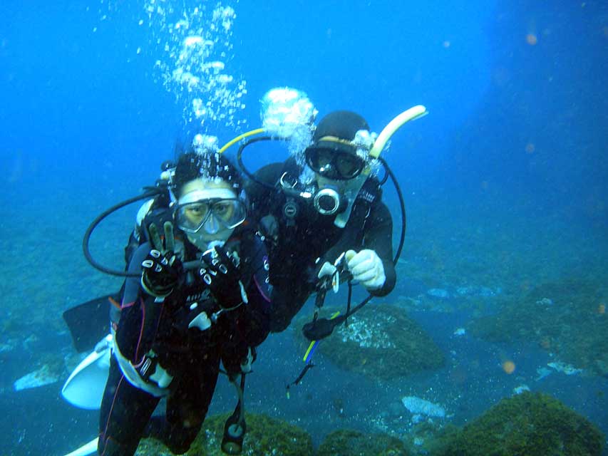 はじめての方にもおすすめの八丈島での体験ダイビング、初心者やブランクでも安心のガイドダイブ、丁寧でしっかりとしたPADI Cカード取得講習など、なによりもお越し下さるみなさまとの出会いを大切している東京から飛行機ですぐの八丈島のダイビングショップです!! [カメも見られた神湊体験ダイビング]