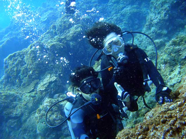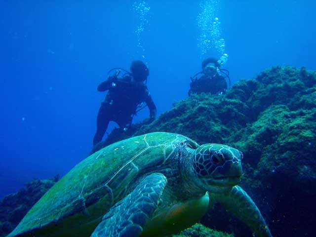 はじめての方にもおすすめの八丈島での体験ダイビング、初心者やブランクでも安心のガイドダイブ、丁寧でしっかりとしたPADI Cカード取得講習など、なによりもお越し下さるみなさまとの出会いを大切している東京から飛行機ですぐの八丈島のダイビングショップです!! [カメを探してうねりを抜けて]