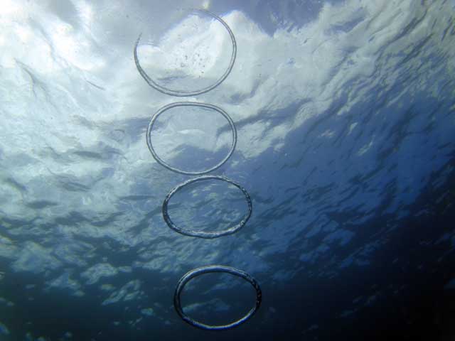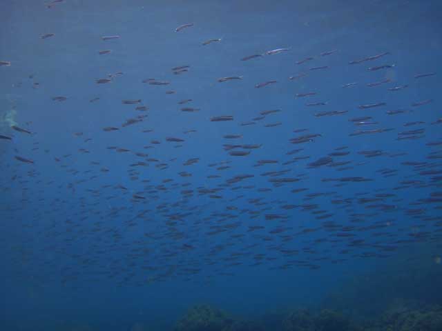 ニザダイやクロメジナの集まりもみたり、バブルリングも作れるだけ作ってみたり、ツノダシちゃんも単体ですがそこら辺にいたりもして、とりあえず、蒼く抜けてる綺麗な海と、とっても大きなアオウミガメと、群れてる感じが気持ちの良いキビナゴと、見せたいものはしっかり見て頂けた体験ダイビングとなりました。