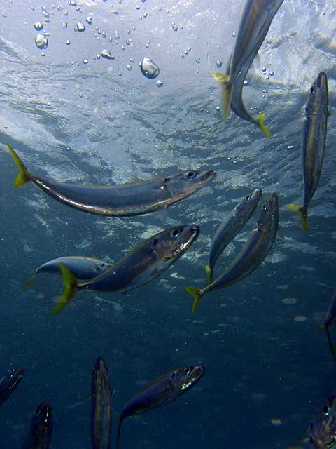 本日は1日体験ダイビングということで、穏やかな底土のタイドプールで練習したあと、砂浜からダイビングです。普段は、な~んもいなくて退屈な道中なんですが、今日は泡をめがけてずーっとムロアジがついてきてくれて、目の前をグルグルと回ってくれました。ホントに手づかみできそうな距離まできてるんですが、さすがに手を出すとビュンっと逃げちゃいますね。