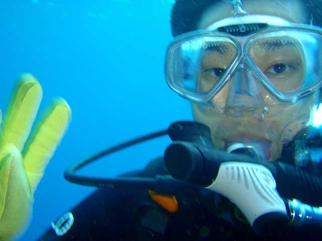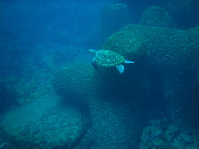 ショップでしっかり説明したあと、八重根のタイドプールで練習してアオウミガメをゲットです。午後からは、ポイント変えて底土でのんびりサンゴの上を泳いできました。